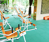 当クラブでフィットネスエリアを設けております。トレーニングマシーンが設置してあり、いつでもトレーニングする事が出来ます。またストレッチの出来るスペースもございますので是非ご利用下さい。